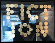 FICTION 2021 Material: Coins, Black paper, Metal frame 22 x 16 cm.